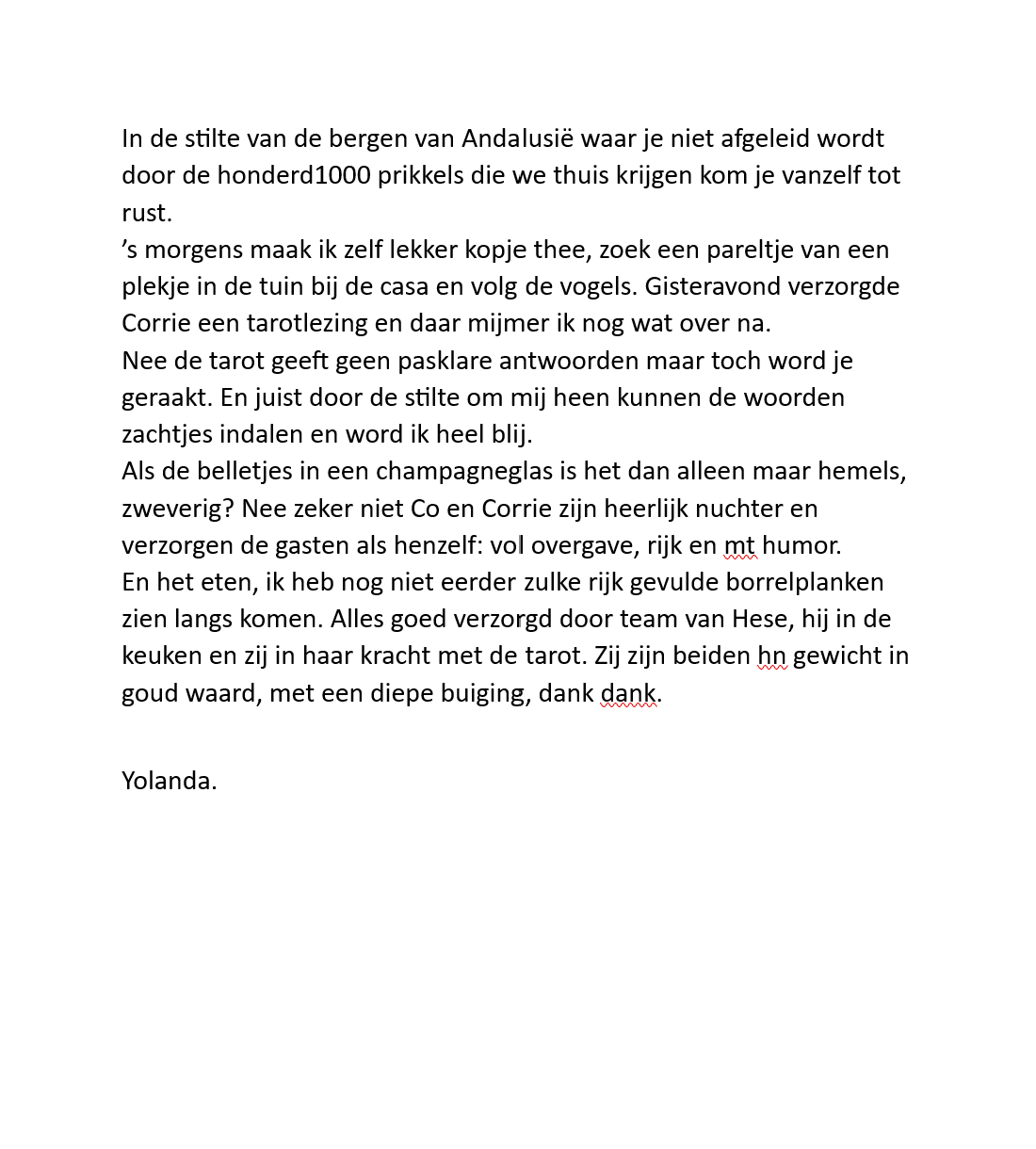 Wat vinden onze gasten van onze retraite in Andalusië