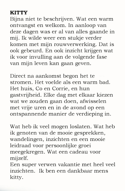 Doordat je geheel ontzorgd wordt, nergens meer op hoeft te letten zelfs niet op tijd, komt er ruimte in jouw systeem. Je zakt meer en meer in je lijf om te kunnen voelen wat er in jou leeft. Je kunt innerlijke rust ervaren om te ontdekken waar je op dit moment in je leven staat.